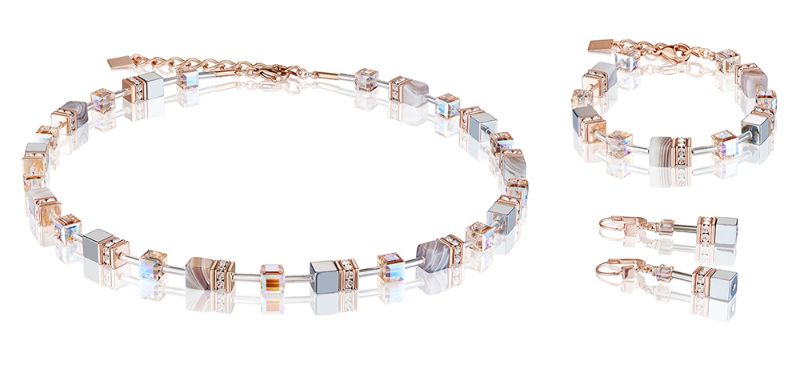 COEUR DE LION Geo Cube Botswana Agate and Blush Champagne Bracelet 4017/30-0230