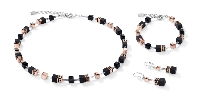 COEUR DE LION Geo Cube Rose Gold and Onyx Bracelet 4018/30-1300