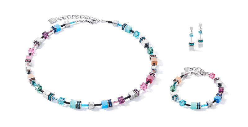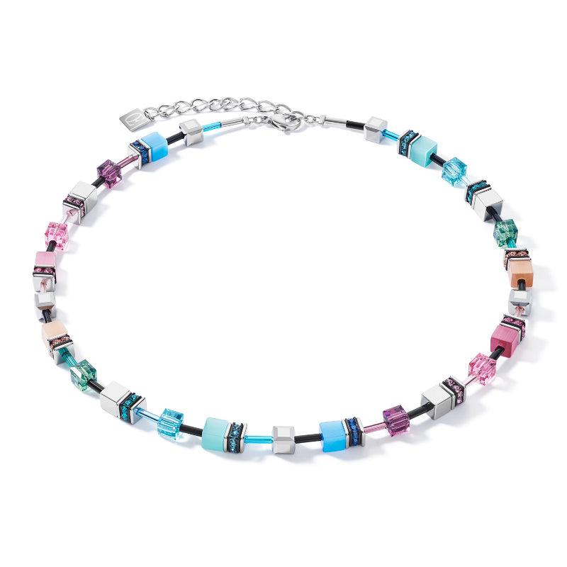 COEUR DE LION Geo Cube Soft Pink, Blue & Shining Silver Necklace 2840/10-1544