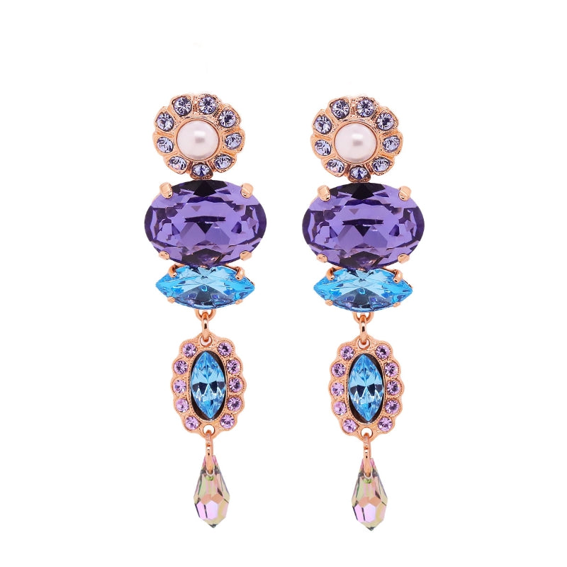 To give her jewellery the aspect of small works of art, the Israeli designer uses hand-cut crystals and semi-precious stones, as well as well-known Austrian in an inexhaustible range of colours and shades. Crystal colours may vary depending on the lighting and the angle they are viewed.