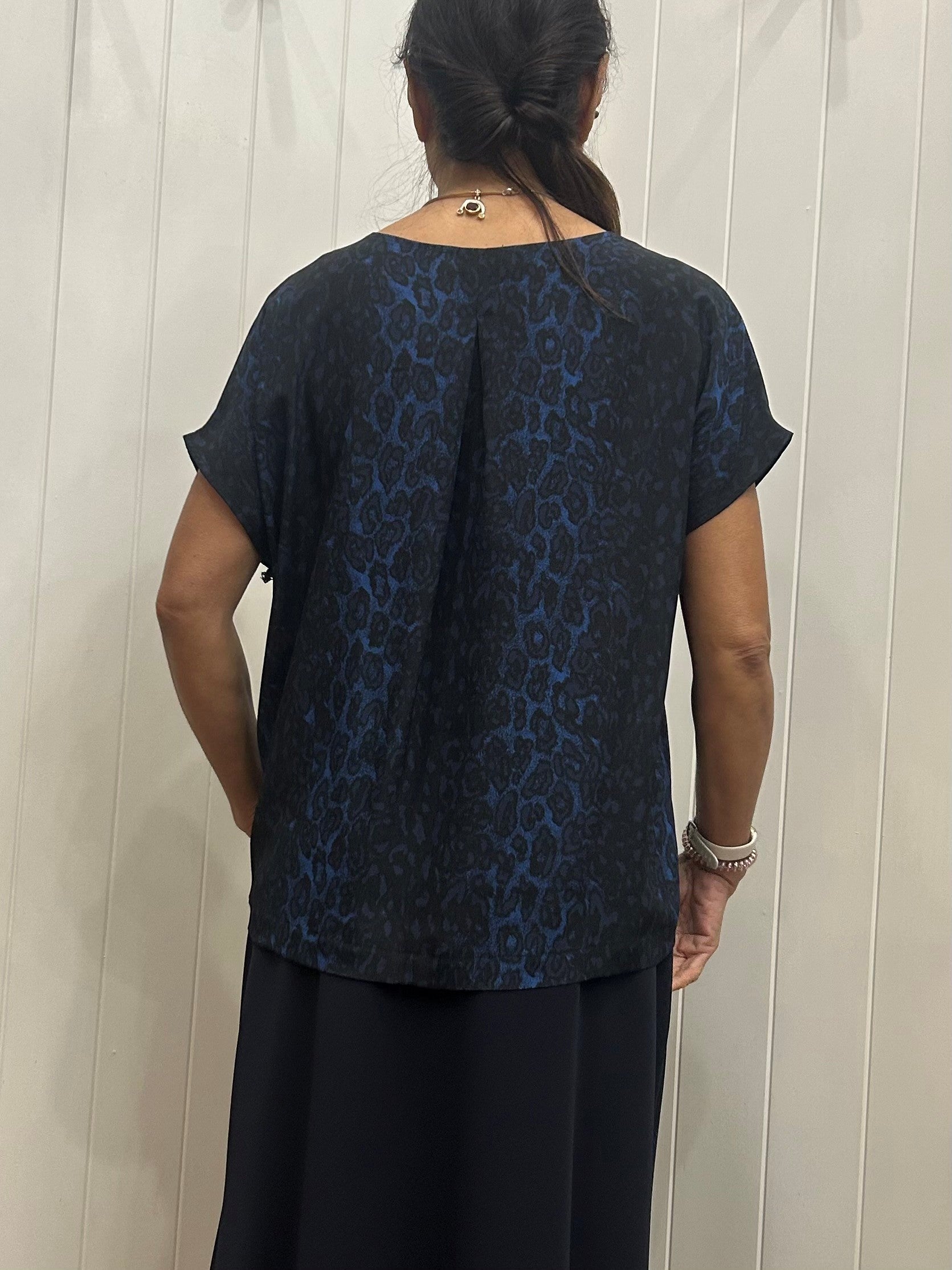 Mela Purdie Cap Shell - Sapphire Leopard Silk Print