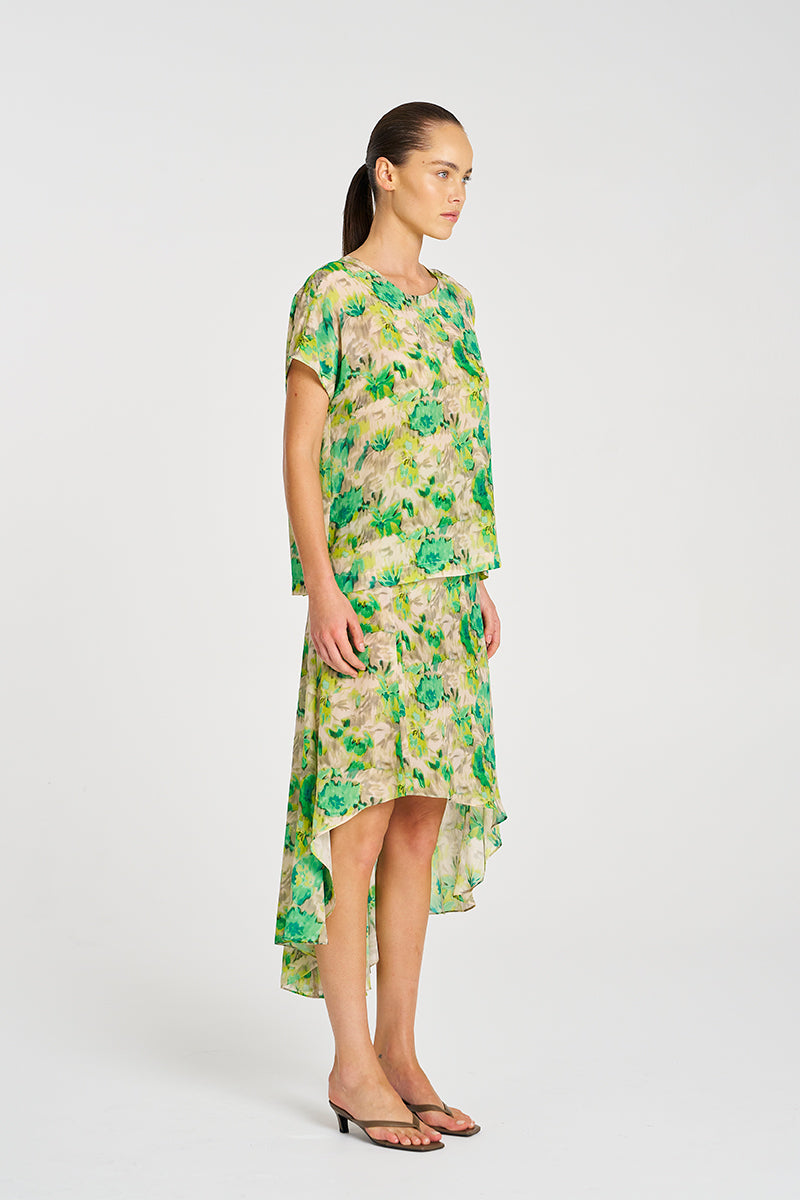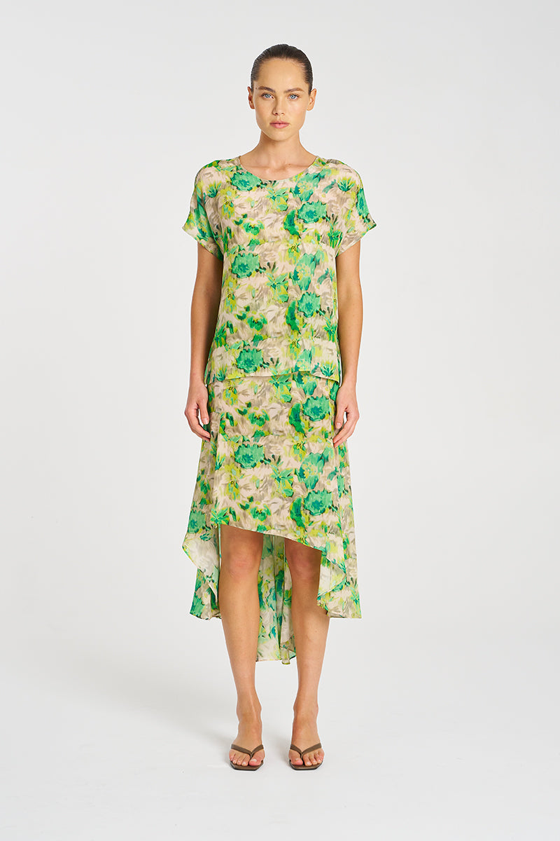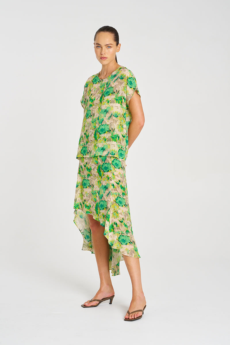 Crafted in Mela Purdie's mid-weight, soft washed Silk Crepe De Chine, featuring the bold Silk Lilly Print. The Cap Shell is a versatile staple silhouette.
