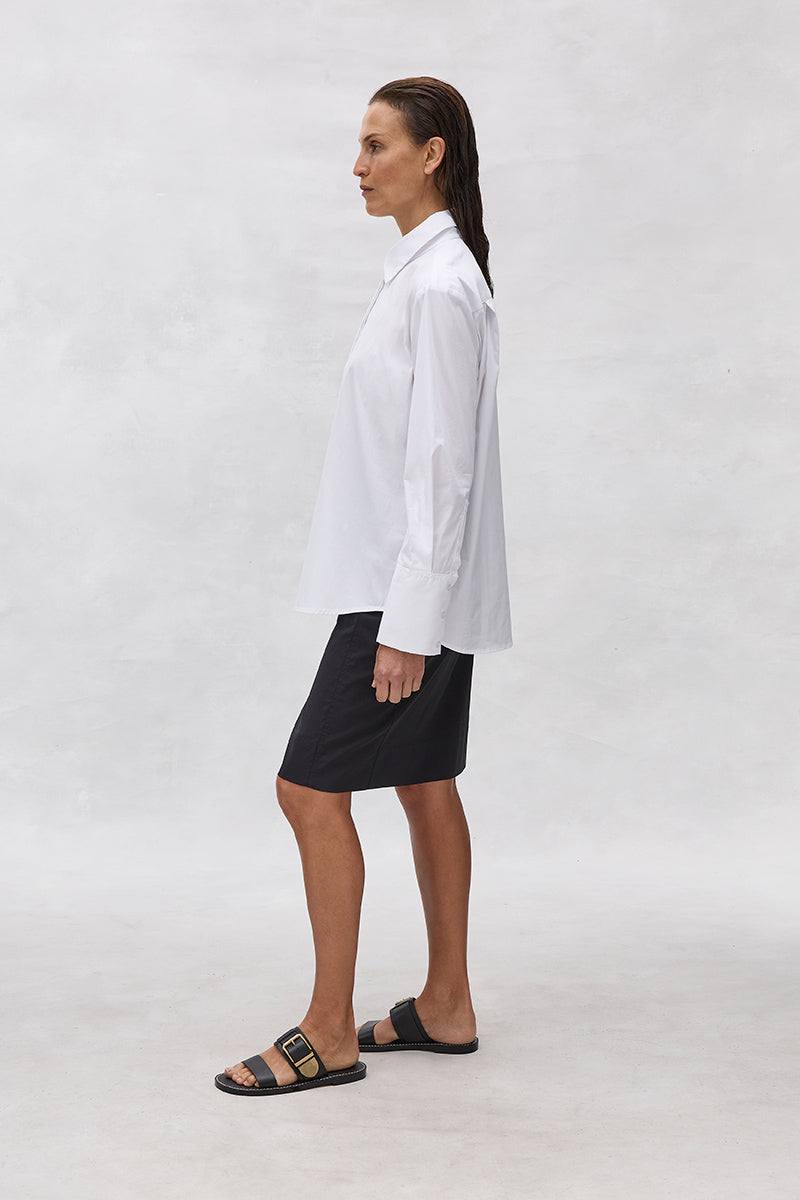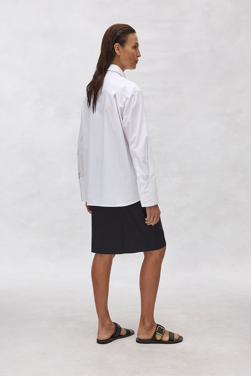 Cut in Mela Purdie's Lightweight Microprene, a crisp, cotton rich fabric with high stretch and a polished finish. The Cargo Skirt features a knee length with side pocket and front panel details.