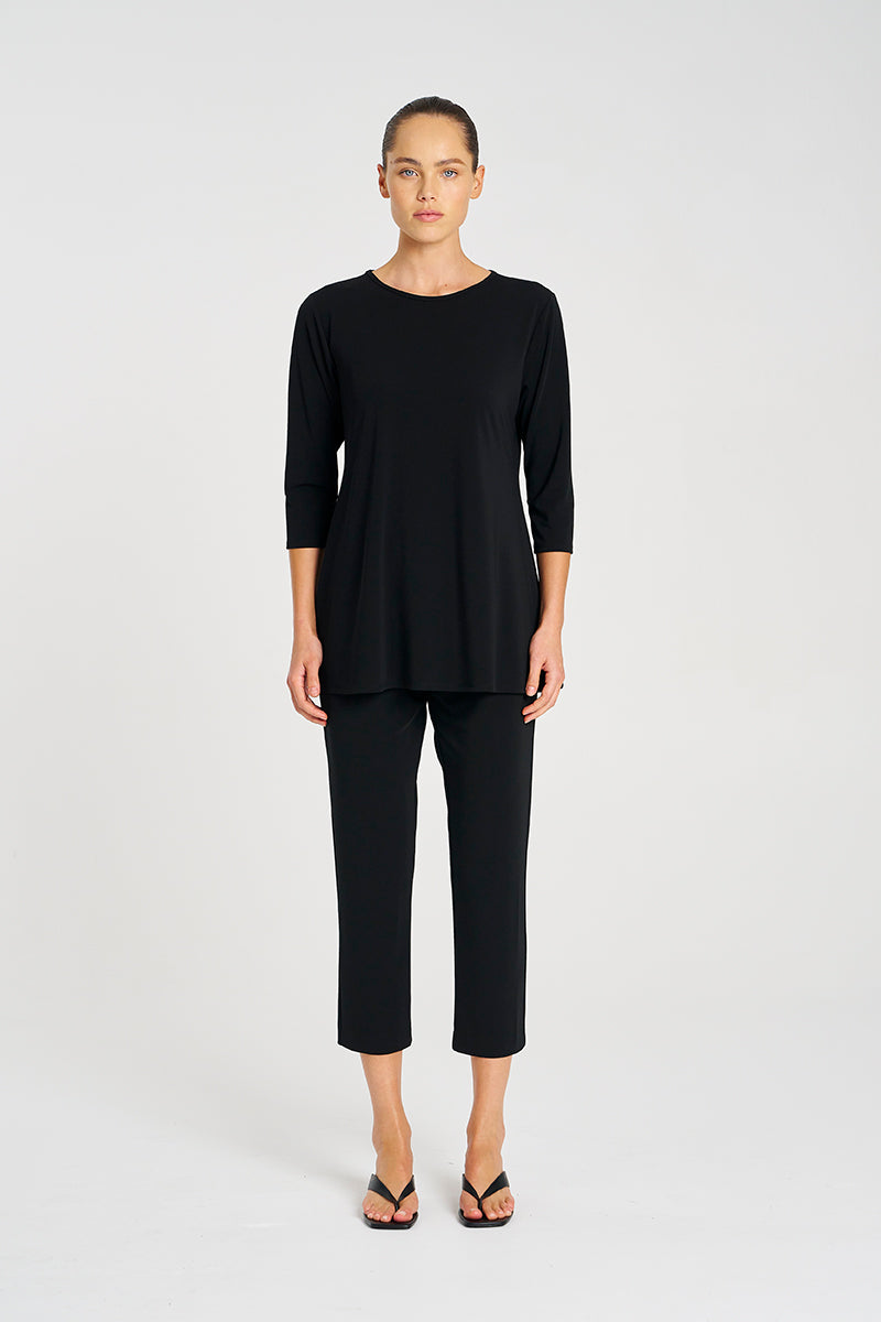 Crafted in Mela Purdie's classic matte finish Powder Knit. The Flared Top offers a boat neckline and fit and flare silhouette. This is the perfect elevated classic for your capsule wardrobe.