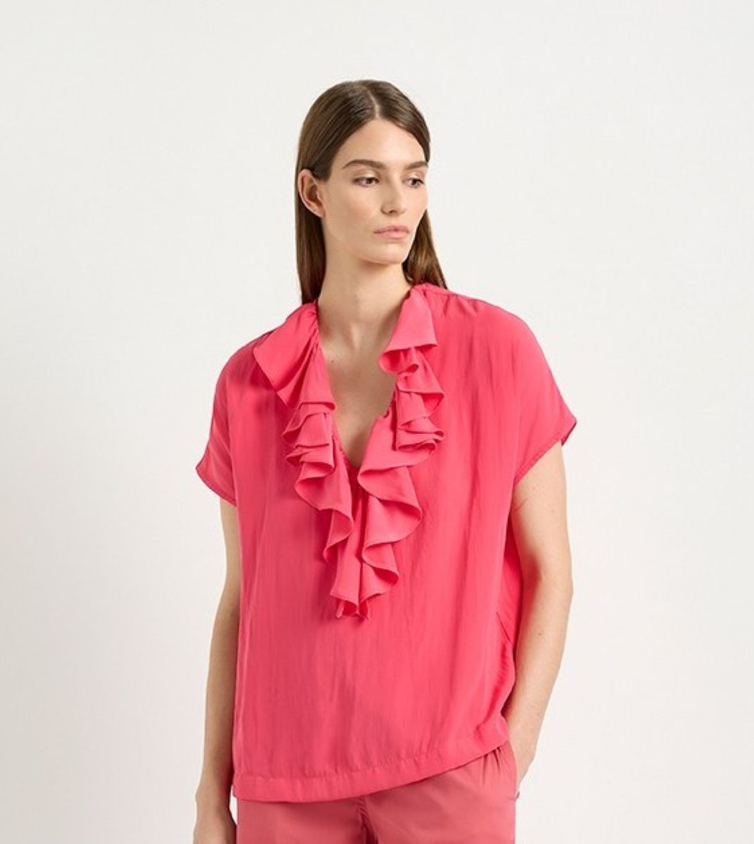 Crafted from Mela Purdie's Mache, featuring a relaxed fluidity & smooth lustre surface. The Garland Shell is an elegant classic with a modern twist. Featuring a soft frill detail at the front neck