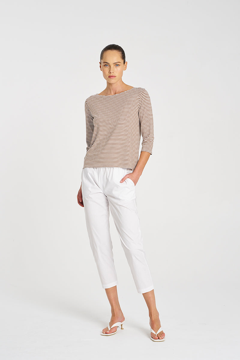 A classic Mela Purdie silhouette. The Relaxed Boat Neck is versatile, flattering and the perfect utility piece for any wardrobe. Cut in the timeless Yacht Stripe Jersey