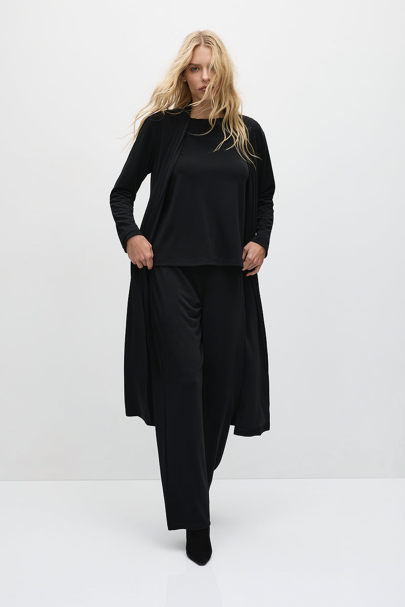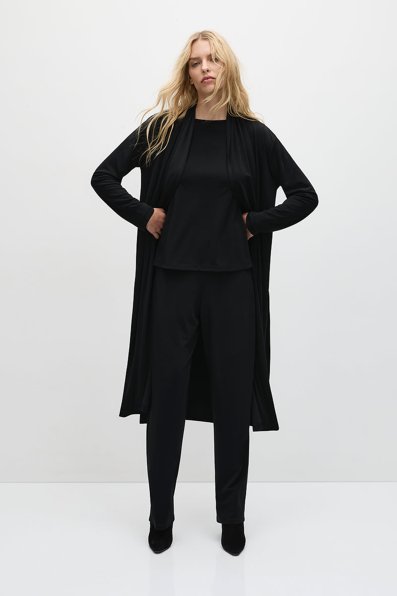 The Vent Duster featuring a full length drapey silhouette and fold over front opening. Crafted in Mela Purdie's compressed Matte finished Powder Knit